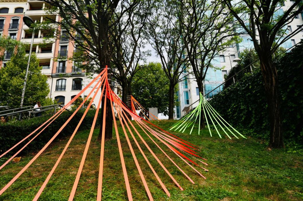 El motivo, muy sencillo. IED Kunsthal, en colaboración con el Ayuntamiento de Bilbao, ha elaborado la instalación paisajística conocida como ‘Geometrías Vibrantes‘ con la que buscan interpelar a los peatones e invitarles a salir de la rutina para «mirar, jugar e interactuar con el entorno».