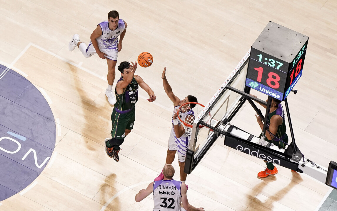 Los primeros compases del segundo cuarto se mantuvieron en la misma línea, con los triples de Hilliard y Jaworski sosteniendo al Bilbao Basket hasta el momento en el que Unicaja arrancó la moto y, con un parcial de 12-0 aprovechando también las imprecisiones y los errores del Bilbao Basket. Con 39-27 en el marcador Ponsarnau volvió a solicitar tiempo muerto para detener la sangría, aunque en los minutos finales de la primera mitad no se logró.