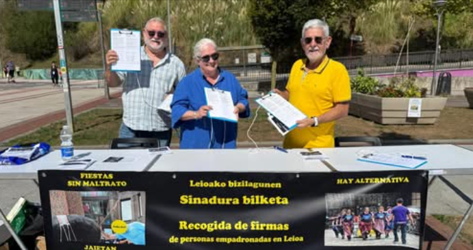 El colectivo ciudadano Leioa contra el Maltrato Animal ha pedido que se acabe con las pruebas de arrastre de piedra con animales, como las Asto probak. Se basan en informes veterinarios que «evidencian el dolor, estrés y agotamiento que padecen los animales en estas competiciones». Recuerdan además que según la ley son «seres sensibles».