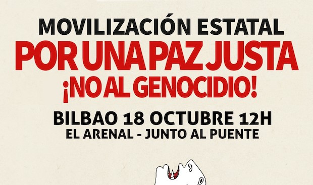 Este sábado 18 de octubre, Bilbao se sumará a las más de 270 concentraciones convocadas en todo el Estado por la plataforma PararLaGuerra.es para exigir una paz duradera, estable y justa en Palestina, así como el fin del genocidio.