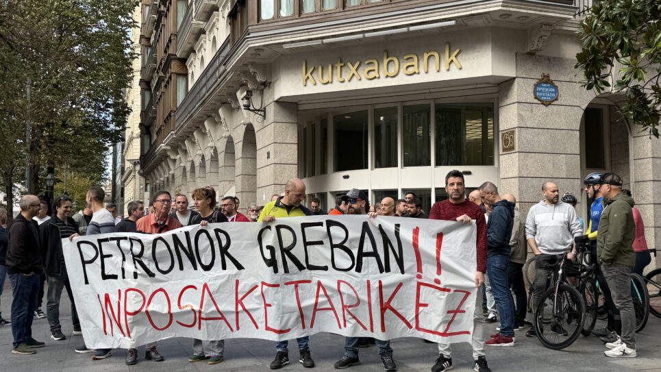 La concentración ha tenido lugar frente a las oficinas de Kutxabank de Bilbao. La entidad bancaria es uno de los principales accionistas de Petronor, por lo que la plantilla defiende que compartirán su preocupación por el futuro de la empresa y el de sus empleados y empleadas.