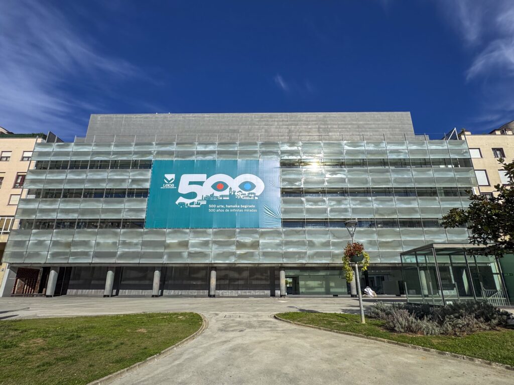Leioa luce ya los colores del 500 aniversario de su fundación. El edificio de Kultur Leioa y el Boulevard exhiben desde este martes dos grandes lonas con el logotipo oficial del medio milenio, una imagen que acompañará a la ciudadanía durante todo el calendario de actos conmemorativos.