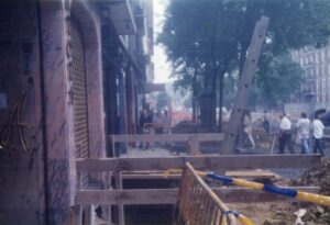 Durante las obras de construcción del metro, el barrio de San Ignacio soportó jornadas traumáticas para muchas familias. “Seguimos teniendo hasta grietas”, relata Carmen, comerciante del barrio: “de hecho a mi madre le tuvieron que vaciar la tienda…” La maquinaria pesada, los camiones de hormigón, las vibraciones de los pilares, crearon un entorno de constante inestabilidad: “Los suelos se partían por la mitad… hubo mucha gente que tuvo que irse a dormir a hoteles porque parecía que el edificio se caía”, recuerda esta voz del comercio local.