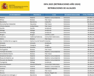 El Ministerio de Hacienda y Función Pública ha publicado los sueldos de los alcaldes de todos los municipios españoles correspondientes a 2024, dentro del portal de Información Salarial de Puestos de la Administración (ISPA). Los datos, que cada año deben remitir los 8.131 ayuntamientos del país, vuelven a situar a los alcaldes de Bilbao, Vitoria-Gasteiz y Donostia entre los puestos más altos del ranking estatal.