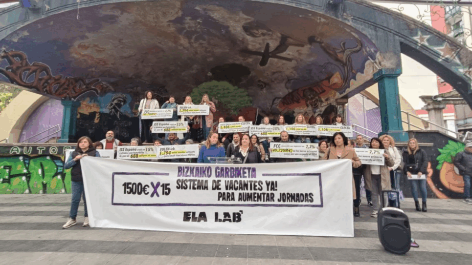 Los sindicatos ELA y LAB han anunciado nuevas movilizaciones después de que la última reunión negociadora del convenio de limpieza de Bizkaia terminara sin avances. ELA asegura que la parte empresarial insiste en modificar la antigüedad, que pasaría a generarse en quinquenios del 5% a partir de 2026, con un máximo de dos. También denuncia que se pretenda rebajar el complemento de las bajas por enfermedad común o accidente no laboral, lo que impediría alcanzar el 100% del salario y reduciría la cobertura después de 100 días de baja.