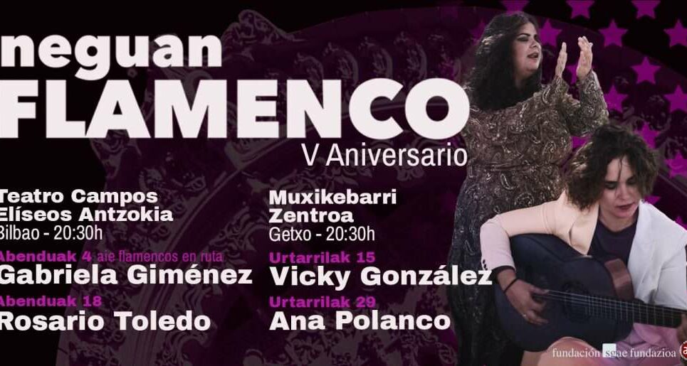 El ciclo arrancará oficialmente el 4 de diciembre y se desarrollará hasta el 29 de enero de 2026 en el Teatro Campos Elíseos de Bilbao y el Muxikebarri Zentroa de Getxo, destacando un elenco con mujeres como figuras centrales: Gabriela Giménez, Rosario Toledo, Antonia Jiménez, Vicky González, Sara Castro y Ana Polanco. La programación combina conciertos, conferencias y actividades complementarias, como la conferencia-concierto del flamencólogo Perico de Paula, que repasará la historia y los logros de las mujeres en el flamenco.