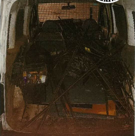Los hechos ocurrieron a las 22:17 horas del domingo, cuando una llamada alertó a la Ertzaintza de que varios hombres estaban cargando material de una obra. La furgoneta estaba estacionada en la localidad de Ortuella. Al llegar al lugar, los agentes encontraron a tres jóvenes, de 23, 24 y 27 años, junto a un vehículo. Dentro del coche había barras de acero corrugado.