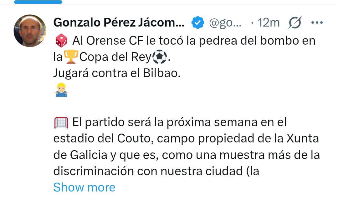 Gonzalo Pérez Jácome, alcalde de Ourense, parece querer calentar la eliminatoria copera que la próxima semana medirá al Athletic Club con el Ourense CF.