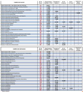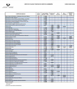 En cuanto a las notas, la más alta es en Biomedical Engineering con un 12`778 y la más baja el 5`920 de Relaciones Laborales y Recursos Humanos.