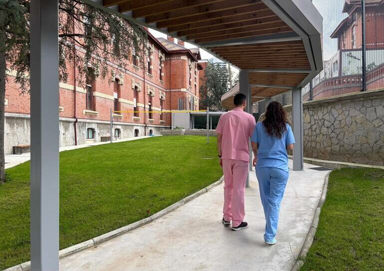 Osakidetza ha renovado el jardín de psiquiatría del Hospital Universitario Basurto, en Bilbao, para mejorar el tratamiento en salud mental infanto-juvenil. Gracias a un presupuesto de casi 500.000 euros se ha convertido esta zona del jardín, de más de 1.000 metros cuadrados, en una herramienta terapéutica útil en cualquier época del año. Para ello, se ha instalado una pérgola cubierta de estructura metálica y madera, que conecta el acceso de visitas con el edificio, ofreciendo un refugio frente a la lluvia o el calor intenso y permitiendo que las y los pacientes salgan al exterior de forma regular.