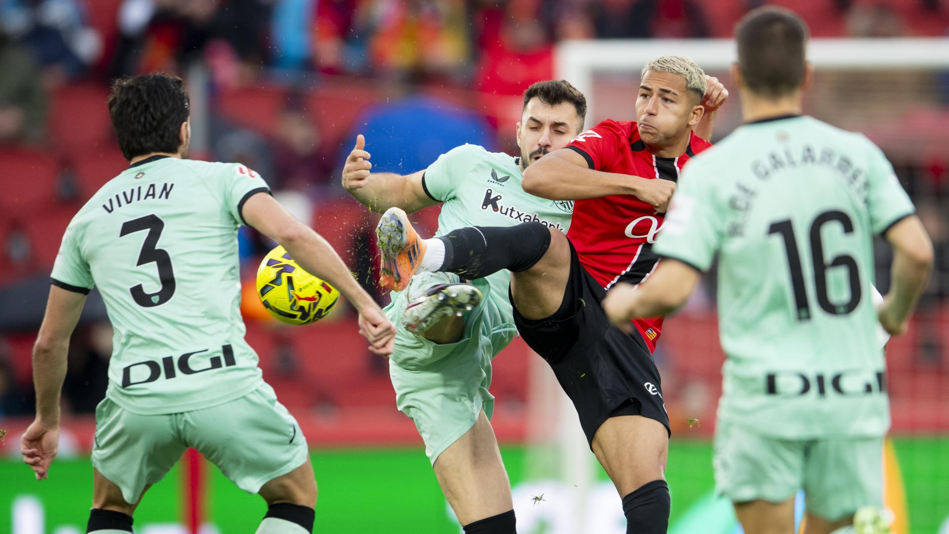 Aún así, a este Athletic se le siguen viendo las costuras en defensa. Un envío en largo peinado por Mateo Joseph cayó en Darder, que tenía mucho espacio por delante y asistió a Vedat Muriqi para que rematara a placer dentro del área. Afortunadamente, Unai Gómez aprovechó un gran pase de Guruzeta y batió a Leo Román con un disparo cruzado, logrando así empatar apenas tres minutos después.
