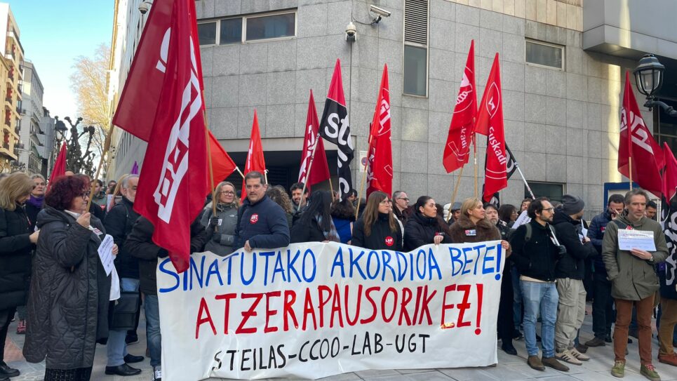 9.000 docentes de centros de iniciativa social en Euskadi están en huelga, convocada por ELA, para denunciar el incumplimiento de los acuerdos. La huelga ha tenido un seguimiento significativo en aquellos centros donde los contenidos del acuerdo no se están cumpliendo. Especial atención en la reducción de la hora lectiva. Hoy, 20 de enero, se celebra en el Tribunal Superior de Justicia del País Vasco el juicio impulsado por ELA para la aplicación de la reducción de la hora lectiva pactada.