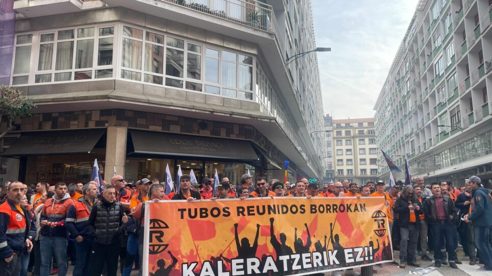 Los plantilla de trabajadores de Tubos Reunidos ha protagonizado una nueva movilización en Bilbao. Lo han hecho frente a a las oficinas centrales para mostrar su rechazo ante los despidos planteados por la dirección. Reclaman que han reiterado la exigencia de retirada total del ERE, de los despidos y de cualquier intención de cierre de instalaciones, asegurando que no están dispuestos a “poner precio” a esos despidos.