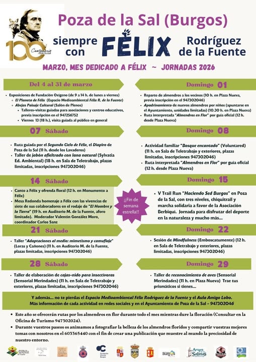 La localidad de Poza de la Sal celebrará este mes de marzo el centenario del nacimiento de su vecino más ilustre y querido: Félix Rodríguez de la Fuente. Lo hará con un programa repleto de actividades culturales, deportivas, exposiciones y talleres.