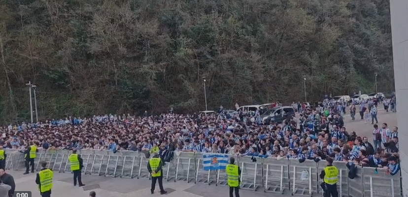 En las horas previas al encuentro, varios grupos de aficionados del Real Sociedad también se han acercado a los aledaños del Reale Arena para recibir a su equipo a la llegada del autobús. Entre bengalas de color, cánticos y bufandas al viento, la hinchada txuri-urdin ha querido hacer sentir a los suyos el respaldo antes de una noche decisiva, generando una atmósfera de empuje que añade aún más intensidad a la semifinal.
