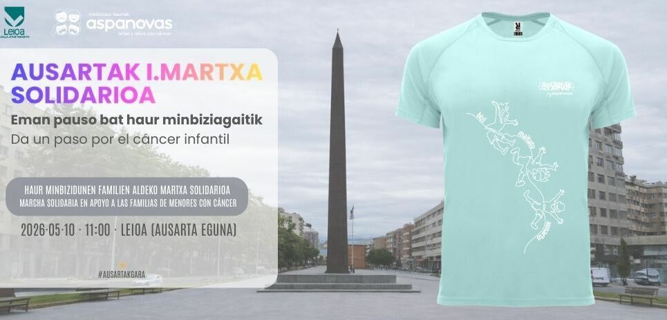 Leioa acogerá el Ausarta Eguna 2026 de ASPANOVAS para apoyar a las familias de menores con cáncer. Se celebrará el domingo 10 de mayo y será una jornada solidaria, con actividades lúdicas, culturales y de sensibilización. De este modo el Ayuntamiento colabora con ASPANOVAS, la Asociación de padres y madres de niños, niñas y adolescentes con cáncer de Bizkaia, en la celebración de la tercera edición de esta iniciativa, pensada para toda la ciudadanía, que tendrá como eje central la I Marcha Solidaria AUSARTAK que convertirá cada paso en un gesto de apoyo y solidaridad. El recorrido, de 3,5 km, comenzará a las 11h y será una ruta fácil. El evento tendrá un carácter lúdico y no competitivo. No se realizará cronometraje ni se establecerán clasificaciones, ya que el objetivo principal es caminar juntos por una buena causa, priorizando la convivencia, la sensibilización y el apoyo solidario.