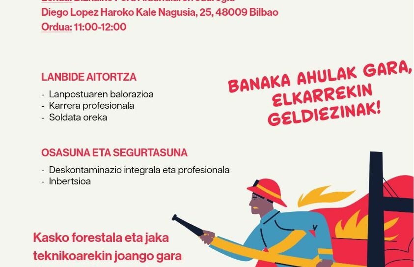 El personal del Servicio de Prevención, Extinción de Incendios y Salvamento de Bizkaia ha convocado una movilización que tendrá lugar el próximo 15 de abril en Bilbao, donde saldrán a la calle para reclamar un convenio colectivo más justo y condiciones laborales dignas.
