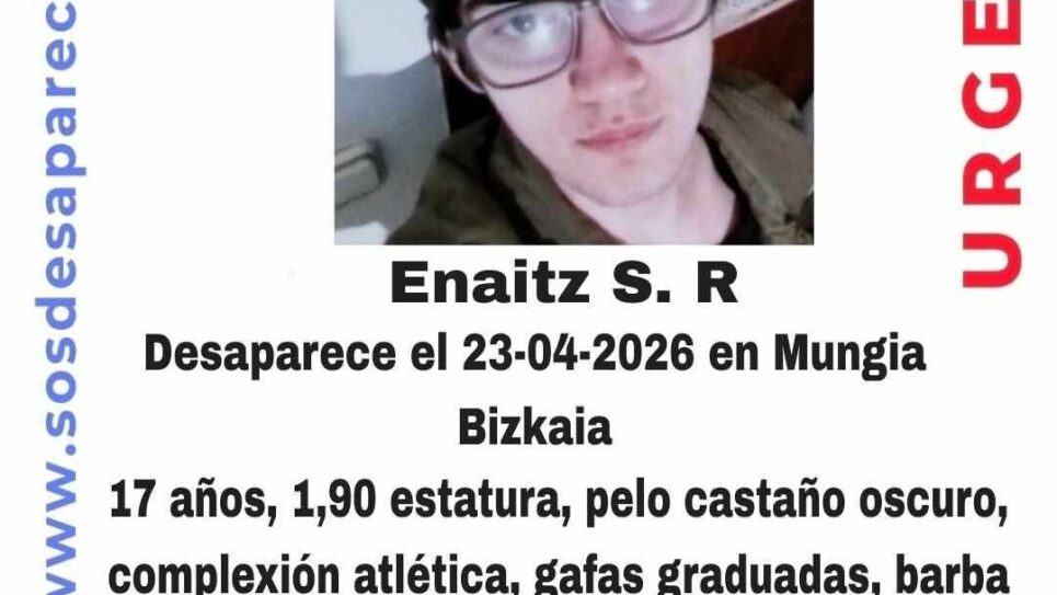 Enaitz, un joven de 17 años desapareció el pasado jueves 23 de abril, y a día de hoy, siguen en su búsqueda. De igual manera, Radio Nervión ha podido saber de primera mano por la madre del hombre, Sonia Renedo, que fue visto el último fin de semana en el puerto de Bermeo. Asimismo, explica que es probable que se encuentre en Bermeo o Gernika.