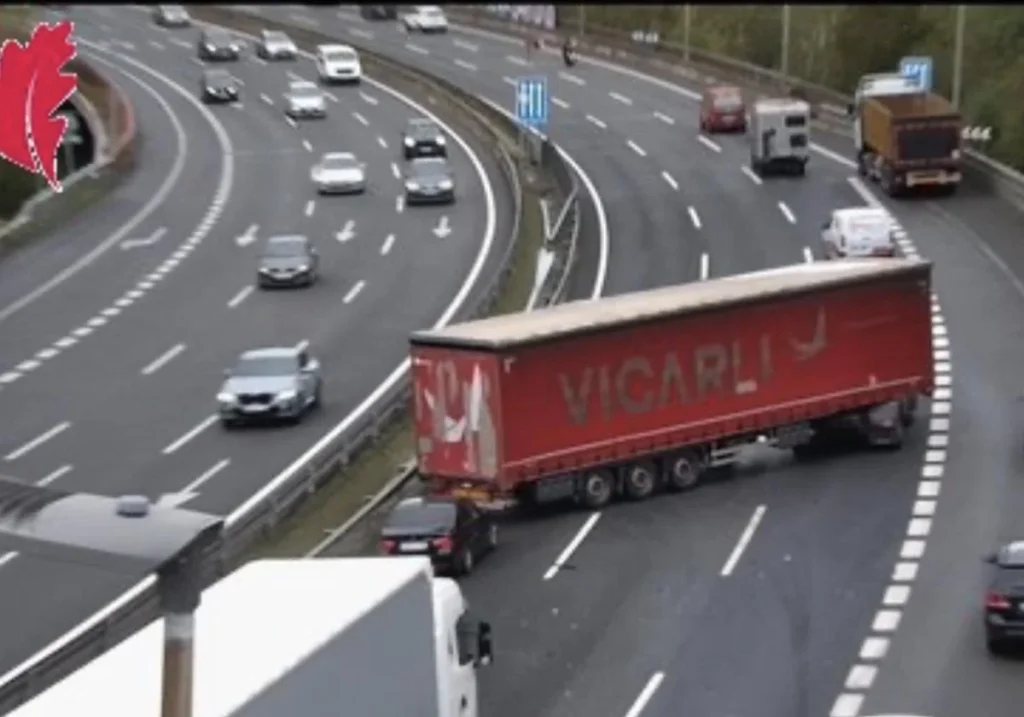 Retenciones kilométricas en el Txorierri sentido Barakaldo. Un camión ha hecho la tijera a la altura de Sondika y se ha quedado cruzado en la calzada, obstaculizando tres de los cuatro carriles, que permanecen cortados al tráfico. Según han informado fuentes del Departamento de Seguridad, un turismo ha colisionado también contra el tráiler. Al menos, una persona ha resultado herida.