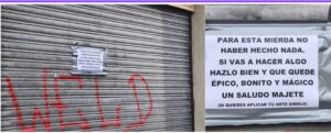 Esta mañana, Alex intentaba a duras penas borrar el grafiti que hace unos días ha aparecido en la persiana de su lonja. Por más que frotaba, la pintura roja se resistía a desaparecer: «Es la primera que me hacen», nos cuenta a Radio Nervión mientras sigue intentándolo. Varias pintadas El grafitero se ha limitado a […]