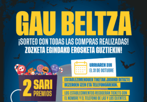 La asociación de comerciantes Gu Dendari, con el respaldo del Ayuntamiento de Galdakao, celebrará el próximo viernes, 31 de octubre, la campaña Gau Beltza, una cita que invita a disfrutar del ambiente más misterioso del año mientras se apoya al comercio local. Sorteos para los clientes Los establecimientos asociados se decorarán con motivos de terror […]