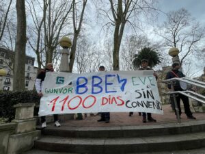 Los trabajadores de la empresa Bahía de Bizkaia Electricidad se han concentrado hoy frente a las puertas del Tribunal Superior de Justicia de Bilbao dentro de las tres jornadas de huelga convocadas esta semana por la plantilla. El sindicato LAB denuncia más de 1.100 días sin convenio colectivo y acusan a la empresa de negarse […]