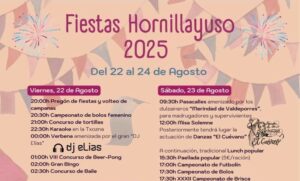 Viernes, 22 de agosto 20:00h Pregón de fiestas y volteo de campanas 20:30h Campeonato de bolos femenino 21:00h Concurso de tortillas 22:30h Karaoke en la Txozna 00:00h Verbena amenizada por el gran «DJ Elías» 01:00h VIII Concurso de Beer-Pong 02:00h Gran Bingo 02:30h Concurso de Baile Sábado, 23 de agosto 09:30h Pasacalles amenizado por los […]