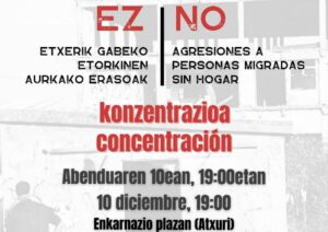 El próximo 10 de diciembre, coincidiendo con el Día Internacional de los Derechos Humanos, la Plaza Encarnación de Atxuri será el escenario de la concentración “La Calle Mata”, convocada por el colectivo Atxuri Harrera y respaldada por más de 60 organizaciones sociales. El objetivo es denunciar las graves agresiones sufridas por personas sin hogar en […]