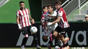 Deportes Elche y Athletic firman las tablas en un partido plano (0-0) 19 de octubre de 2025 por José Manuel Simón Rodríguez | Deja un Comentario Sin los hermanos Williams en el once, el Athletic Club volvió a puntuar lejos de casa mes y medio después ante un Elche valiente y que puso en apuros a los rojiblancos en un partido que se preveía abierto y entretenido pero terminó siendo bastante trabado y con mucha tensión. Principalmente porque la grada del […] Lea más » Taggedathletic club Elche CF LALIGA EA SPORTS